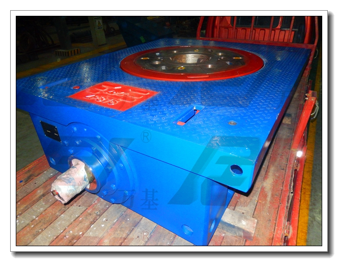 ◆由于傳動(dòng)平穩、噪聲小,承載能力高,錐齒輪副多采用螺旋錐齒輪。轉臺裝置是轉盤(pán)用以輸出轉速和扭矩的旋轉件,轉臺裝置由主軸承支承在底座內,主軸承采用主輔一體式結構的角接觸推力球軸承,既可承受最大鉆柱和套管柱負荷,也可承受鉆井和起下鉆時(shí)來(lái)自井下向上的沖擊負荷,結構緊湊。